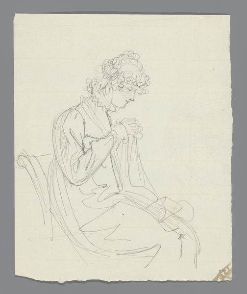 Editor: This is John Hayter's "Mrs Whinny, in Profile to Left," a delicate ink drawing. It feels very intimate and immediate. What can you tell me about how portraiture like this functioned in its time? Curator: Consider the rise of portraiture in the 19th century. It democratized image-making. No longer just for aristocracy, the middle class could participate, reinforcing social status. How do you think this drawing reflects or challenges that trend? Editor: Well, the sketch-like quality feels less formal, perhaps more accessible? Curator: Precisely! Hayter's sketch suggests a shift. It's less about rigid representation and more about capturing a likeness, an impression. This speaks to changing social values around representation and accessibility in art. Editor: That's fascinating – it's like a visual shorthand for a broader cultural shift! Curator: Indeed. Looking at art through a historical lens helps us understand not just what we see, but why and for whom it was created.