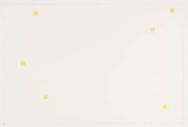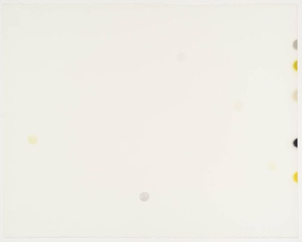Curator: At first glance, this piece seems like a study in muted tones and simple forms. Editor: I agree, but I am immediately drawn to the process. What materials were employed, and how might the artist's labor inform the composition? Curator: This work, titled "November +1", is by the artist Bernard Cohen. While the exact date is unknown, it invites us to explore the subtle variations in color. Editor: The dots and their placement are intriguing. Is the artist making a comment on production or perhaps consumption with what appears as a study on the paper itself? Curator: We can see his focus on materiality: the way the pigment interacts with the paper and the overall effect. Editor: It is more an exercise than anything else, but I believe the artist is making a comment on the process in and of itself. Curator: It certainly offers a moment of quiet contemplation amidst the intensity of other works. Editor: Yes, a reflection on the act of creating itself.