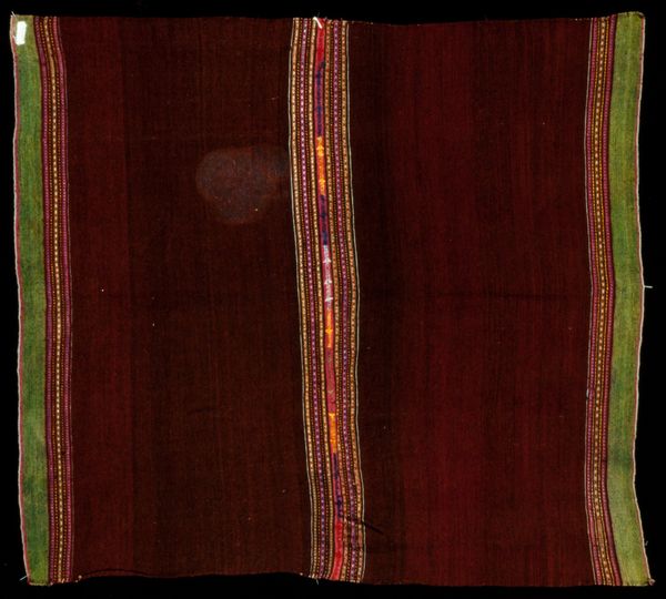 This textile panel, of unknown date and origin, presents an intriguing case study in the global circulation of design and artisanal craft. The vibrant colors and bold, repeated motifs speak to a rich cultural heritage, most likely from Central Asia. The visual language employed here—the specific palette, the geometric abstraction, and the suggestion of figuration—creates meaning through cultural references and historical associations. The technique used in the textile’s creation can tell us much about trade routes, social hierarchies, and the transmission of knowledge. Was it made for local consumption, or for export? Was it produced in a workshop, or at home? Understanding the social conditions that shape the artistic production of textiles like this requires researchers to look at a broad range of sources from trade records, costume history, pattern books, and museum collections. The meaning of this art object lies not just in its visual appeal but also in the complex web of social and institutional contexts that brought it into being.