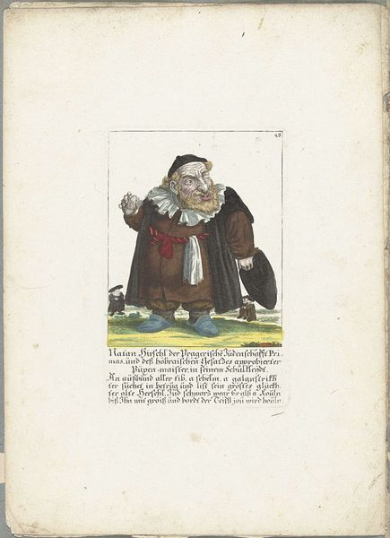 Around 1710, Martin Engelbrecht created this etching titled ‘De dwerg Oswald van Stroblbardt,’ now held at the Rijksmuseum. Engelbrecht lived in an era where societal hierarchies were visually reinforced, and printed images played a crucial role in shaping public perception. This hand-colored etching presents a figure identified as Oswald von Stroblbardt, a dwarf, in a manner that reflects the period’s complex attitudes toward physical difference and social status. The inscription suggests a satirical commentary on social mobility, possibly mocking the aspirations of those considered marginal. The use of the term "dwarf" itself carries historical baggage, reflecting a time when people with dwarfism were often objects of curiosity and ridicule. The artwork prompts us to consider how individuals with disabilities were represented and perceived in the early 18th century, inviting a dialogue about the power dynamics embedded in visual culture. It serves as a reminder of the emotional weight of these historical representations.