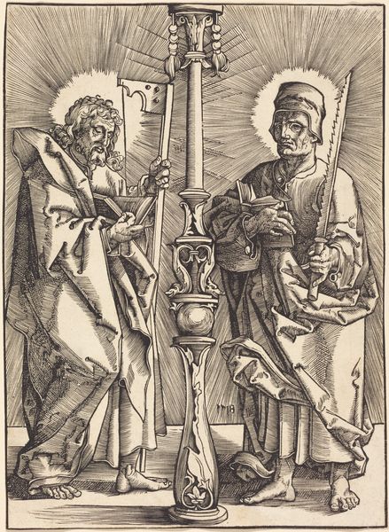 Leonhard Beck created this woodcut of Saint Sigismundus during a time of significant religious and political upheaval in Europe. Beck was working in Augsburg, a city deeply affected by the Reformation and the rise of powerful banking families like the Fuggers. Sigismund, king of Burgundy in the 6th century, is depicted here with the regalia of kingship and sainthood. The sword and scepter represent his royal power, while the halo signifies his sanctity. The inclusion of attendants emphasizes his status, yet these figures also hint at the complex relationships between power, patronage, and religious identity in the early 16th century. Beck’s decision to portray Sigismund reflects the ongoing debates about leadership, morality, and faith that were central to the period, capturing a moment in time where traditional representations of power were being challenged by new social and religious movements. The work invites contemplation on the burdens of leadership, and the intersection of spiritual devotion with worldly authority.