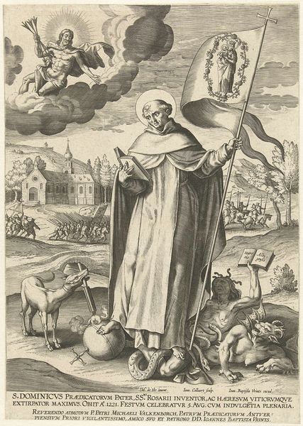 This engraving by Theodor Matham depicts H. Thomas Becket, and presents a fascinating array of symbols that bridge earthly and divine realms. Becket holds a palm, symbol of martyrdom, while above him, an angel carries a martyr’s crown and a sword pierces his head, marking his violent death. The church he bears signifies his dedication to ecclesiastical power, a stark echo of his conflict with Henry II. Consider how such imagery resonates through time; the palm, reminiscent of ancient victory, evolves into a symbol of Christian triumph over death. The recurrence of such symbols speaks to a collective memory, a subconscious drive to preserve and re-interpret potent cultural motifs. These symbols stir deep emotional responses, connecting viewers across centuries to the enduring drama of faith and power. Note how this imagery is far from linear; it cycles, resurfaces, and transforms, each iteration layering new meaning onto the old.