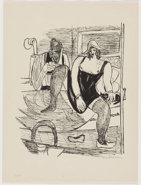 Curator: Patricq Kroon created this ink and watercolor drawing, "Diplomatieke overdenkingen," sometime between 1920 and 1930. It’s a very direct composition, wouldn’t you agree? Editor: Striking! The stark black ink really gives it an edge. It looks like two caricatures locked in a heated argument. The body language is so exaggerated. Curator: It certainly captures a specific type of political posturing, doesn’t it? I’m immediately drawn to how Kroon uses clothing. The military uniform on one figure, contrasted with the more elaborate, almost theatrical costume on the other… Editor: Yes, there's a very deliberate visual tension. The figure in the military garb is clutching what appears to be a rolled-up document, perhaps a treaty or decree. He represents rigid authority, while the other seems more… flamboyant, shall we say? The sword adds a dramatic flair. Curator: Exactly. And note the detail in the background, that stylized architectural form. It's all rendered in stark black and white. Kroon is really playing with the symbols of power, and, perhaps, satirizing diplomatic rituals after the Great War. The lack of color, especially, suggests a weariness, a sense of the old order clinging on despite the destruction it has wrought. Editor: I agree. The caricature aspect is also critical. It reminds us that even serious matters of state are often performed, with the figures almost play-acting their roles. There’s a sardonic edge, a knowing wink about the spectacle of diplomacy. Curator: What is really intriguing for me is to imagine its original viewing context and intended audience, given its cartoonish approach. Was this created for a limited group, possibly distributed through some informal social network as a political cartoon or as a way of circulating opinions within a group? Or was this intended for a wider circulation through published newspapers, or maybe journals? It does pose a difficult, although interesting, question. Editor: And, the title itself: "Diplomatieke overdenkingen" – Diplomatic Reflections. It invites us to not only look at the image but also contemplate the deeper implications of power, negotiation, and, perhaps, the inherent absurdities within international relations. It is a poignant comment that resonates through time. Curator: Indeed. Looking closely at Kroon’s "Diplomatieke overdenkingen" allows us to see how one artist critiqued their socio-political world through bold symbolism and sharp caricature. Editor: I agree. It’s a wonderful example of how powerful simple lines can be. It offers plenty to consider in terms of cultural critique and legacy.