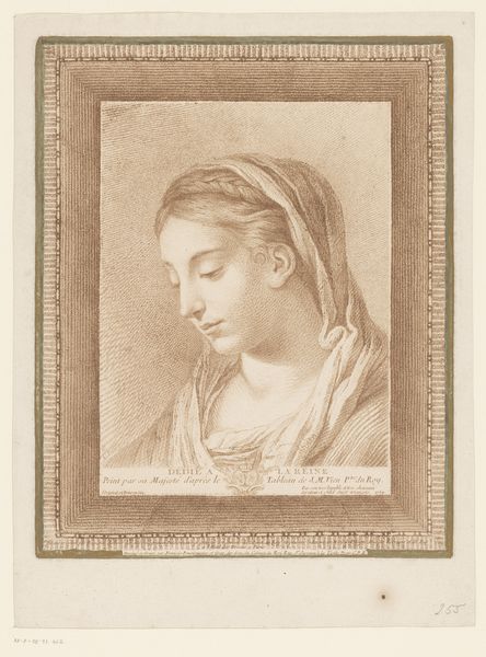 Curator: Let's turn our attention to a pencil drawing from 1793 titled "Head of a Woman with Headscarf, from the Side" by J.H. Tak. Editor: A striking work. It evokes such a feeling of serene melancholy, doesn’t it? The delicate rendering of light on her face is just lovely. Curator: It's quite indicative of the Neoclassical movement, focusing as it does on precise line work, likely in red chalk. The availability of these drawing materials in the late 18th century facilitated the widespread production of such portrait studies, which were important as a form of instruction and as collectible items. Editor: The headscarf immediately brings to mind the traditional veils representing modesty and piety, especially those worn during religious ceremonies. Is it a coincidence that her gaze is averted downwards, or is the artist subtly hinting at submission? The classical profile enforces that sense of iconic familiarity as well. Curator: I wonder about the role these types of garments played at that moment; were they a marker of social status, maybe, indicating affiliation with certain groups? How readily available and how expensive were they, relative to the value of labor at the time? Also, let's not ignore the paper. Understanding its production, trade routes, would give more nuance, and insight, into the networks which sustained Tak's artistry. Editor: True, yet I can't help but also see echoes of timeless ideals of beauty. The simple lines capture something profound about the human condition. A sort of universal symbol for mourning, perhaps? Curator: A great interpretation, and the social dimensions of this drawing surely adds weight to any singular meaning that this drawing seems to indicate. Editor: Absolutely. Seeing the artwork from the perspective of material production enriches our encounter significantly. Curator: And looking closely for potential significations rooted in symbolic tradition only enhances our engagement with the image.