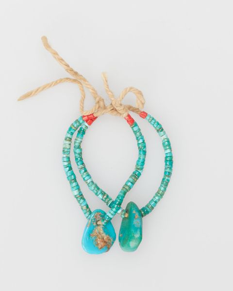Editor: So, this is a woman’s neck ornament with a medallion, a "shitoki," from Japan, probably late 19th century. Looking at it, the combination of the dark beads with those bright turquoise ones gives it a really striking look. What do you see in this piece? Curator: I see layers of cultural memory embedded within these contrasting colours and forms. The circular medallion, a prevalent symbol across cultures, speaks of cycles, of wholeness. But here, the dark perimeter edged with floral ornamentation hints at ephemerality, like the fleeting beauty of blossoms. Editor: I hadn’t thought of the flowers in that way. I was just seeing them as decoration. Curator: And the central metallic disk, punctured with three repeating shapes... Those aren't mere decorations either. Do they evoke any particular feeling, any specific symbolic associations, perhaps of celestial bodies, trifectas, or perhaps, ancestral relationships? Editor: Celestial bodies maybe. They look a bit like stars, or even mirrors. Is it common to use these kinds of symbols in jewelry? Curator: Precisely. Jewellery, especially when worn close to the body, serves as a potent visual language. Materials are rarely selected without thought. That’s why these materials are important too. Consider the colour choices in the beads: blue juxtaposed with black... perhaps mirroring sky and the depths. Editor: It makes you wonder what the wearer wanted to express. It’s almost like a coded message. Curator: Exactly! It suggests both social identity and personal aspirations; aspirations toward something perhaps unreachable in life itself. Thank you, this has provided new avenues of inquiry for me! Editor: This piece is so much richer now. I really appreciate you sharing your knowledge about it.