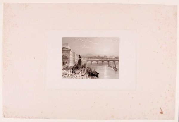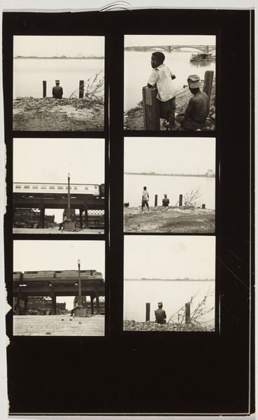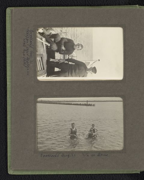 Curator: Looking at this photograph, there's a wistful kind of beauty in its simplicity. Editor: Ah, yes. This photograph, entitled "De rivierboot Prins Hendrik verlaat plantage Accaribo," by Theodoor Brouwers, was taken sometime between 1913 and 1930. It’s currently held at the Rijksmuseum. The medium is listed simply as photography, but the albumen print on paperboard speaks volumes. Curator: An albumen print... a technique born of resourcefulness. The egg whites create this glossy sheen, but the overall effect here is strangely subdued, almost melancholic, don’t you think? Editor: The albumen binds the silver, fixing this landscape to its material support. We can read the subject here, however: a steamboat churning the river, leaving behind a plantation—presumably carrying goods or people, labor or profits—all driven by the workings of extraction, trade, and technological advances, I see the social structures imbedded in the emulsion itself. Curator: See, I'm drawn to the gaze of the figures in the foreground, their bodies looming larger and their clothes made soft as their gazes pierce through time. It makes me wonder about who is going and who is staying... Editor: This photograph captures labor mobility and power relations through the movement of the riverboat and stillness of the planted bodies. Curator: Yes, yes. There’s such vulnerability in those tones and textures. Perhaps Brouwers was suggesting the complicated emotional terrain that existed alongside industrial progress and this idea of a "modern" age... like nostalgia and mourning mixed together in a strange brew. Editor: And captured within the confines of capital. You have those social, human dynamics etched into the very photographic chemistry of the work. Curator: Perhaps he saw the beginning of the end for this old world? Editor: The albumen itself, derived from mundane commodities like eggs, signifies the transformation of natural resources into commodities under capitalism. A humble material transformed. A photo-fossil of history's layers. Curator: Yes, well, looking at it this way, it all takes on an additional emotional weight, and that steamer drifts out into our own moment carrying all kinds of stories. Editor: The steamer and that albumin serve to underscore how everything around us—every image, object, landscape—is formed, in large part, through our connection to industry.