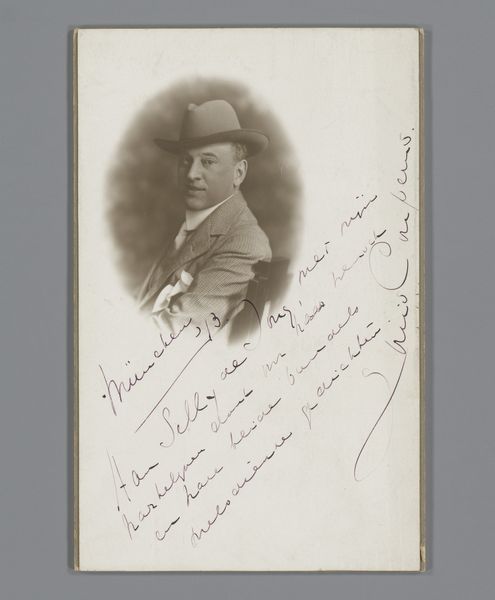 Robert Hope Macey made this portrait of Joseph Parker using graphite on paper. Graphite pencils, a relatively modern invention, allowed for precise and controlled mark-making. The artist uses delicate shading to create a sense of depth and volume, capturing Parker's likeness within a circular frame. The choice of graphite, a readily available and inexpensive material, speaks to the democratization of portraiture in the late 19th century. While oil paintings remained the domain of the wealthy, graphite drawings offered a more accessible means of commemorating individuals. The inscription below the portrait, likely a handwritten note from Parker himself, adds another layer of meaning, revealing his engagement with religious media and intellectual discourse. The combination of portrait and text transforms the page into a personal and historical artifact, reflecting the cultural and social context of its time. This artwork encourages us to consider the relationship between materials, artistic skill, and the representation of identity.