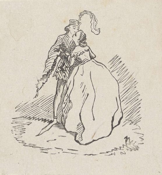 Editor: So, here we have Oskar Kokoschka's 1914 lithograph, "The Man Raises His Head Above the Grave on which His Wife Sits," at the Minneapolis Institute of Art. The image feels heavy, laden with grief. What symbols do you see at play here? Curator: I see a constellation of powerful symbols expressing profound grief and existential anxieties. The man emerging from the grave evokes resurrection, yes, but also immense psychological struggle. Notice how his head strains upward. Consider the cultural memory of Orpheus reaching into Hades – is this an echo of that classical struggle? Editor: Definitely, that tension is palpable. And the woman sitting on the grave… she seems almost ethereal, disconnected. Curator: Precisely. She is at once present and absent. The grave isn't simply a physical marker; it’s a threshold, a site where worlds collide. The crescent moon, so fragile, above… do you see the dawn of sun to her left? What tension might exist between such opposing symbology? Editor: So, birth, death, sorrow, hope... It is all happening at once. I noticed her limp hand is angled sharply, and the male figure seems trapped, with both hands pinned. I never knew a lithograph could pack so much emotional weight. Curator: The sharp angularity certainly captures Kokoschka's Expressionist style, heightening the drama. Kokoschka taps into something timeless, exploring the pain of loss and the enduring human need to find meaning in the face of mortality. How has our discussion reshaped your initial feeling of heaviness? Editor: Now it feels less like just sorrow and more like…a potent struggle. A painful process. It definitely gives me more to consider than just grief at face value. Thanks! Curator: Indeed, art invites us to delve deeper, enriching our understanding of shared humanity, our joys, and our sorrows.