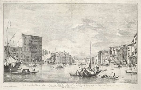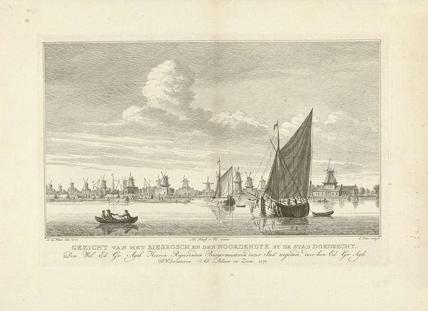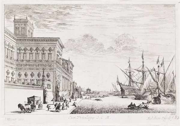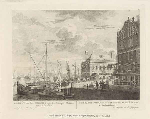 Curator: This engraving, titled "’s Lands Zeemagazijn na de brand, 1791," presents the aftermath of a fire in Amsterdam's naval warehouse, an event captured anonymously. Editor: It's incredibly bleak. The somber tonal range perfectly conveys a sense of devastation and perhaps, an undercurrent of social upheaval. Look at how the water reflects not the sky, but only broken building shadows. Curator: Observe the artist’s strategic use of line. The precise details rendered through engraving delineate the scale of the destruction with striking clarity, each broken window a dark void, contrasting against the rigid architectural framework still standing. Note too how those tiny human figures give context to that building size. Editor: Exactly. The print emphasizes the means of its production—the meticulous process of engraving which, in this context, becomes almost forensic. Consider the labor and time involved in creating such detail of such ruin, and how the social role of print was not only memorializing, but also possibly to inform investors who held contracts to supply materials for rebuilding. Curator: The cityscape is divided almost geometrically. On the right we have damage that seems unrestrained, yet is juxtaposed with ordered rows of windows on the building on the left, emphasizing the event that is now an undeniable part of the site's history. Editor: But the materiality extends beyond the printed image, doesn’t it? The ink itself, the paper, even the press used to produce these images – all tools complicit in both documenting the disaster and potentially aiding in the subsequent reconstruction and re-consumption of naval assets. One wonders about the origin of these prints and to whom they might have been distributed. Curator: The engraving offers a chance to delve deeper into art as structured thought, and even as ordered response to catastrophe. We began thinking about how the artist captured it and maybe can pause and appreciate the layered textures of social meaning, craft process and pure artistic interpretation. Editor: Yes, and to examine art less as isolated masterpieces and instead as traces within a system of production, labor, and historical record that we can use as additional knowledge.
