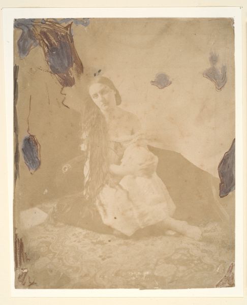 This early photograph captures Henriette-Reneé Patu with a weary pose, crafted by Louis-Adolphe Humbert de Molard using a daguerreotype. Observe the woman's gesture; her head rests upon her hands, a motif resonating through centuries. This posture echoes the melancholic muses and mourning figures found in ancient Roman sarcophagi. As seen in later Renaissance depictions of grief, it signifies introspection and contemplation. Even in contemporary portraiture, this posture conveys a sense of profound thought and personal history. It is a primal, almost universal expression of the human condition, touching upon the collective memory of sorrow and reflection. Here, the somber presentation evokes a sense of empathy, engaging viewers on a deeply subconscious level. The pose has transcended its origins, resurfacing with nuanced meanings across time.
