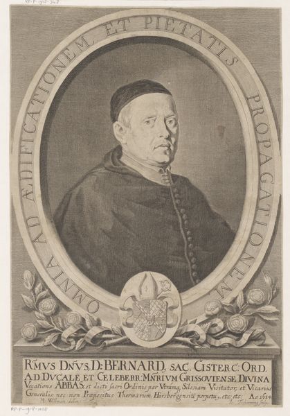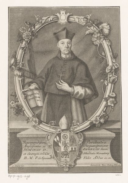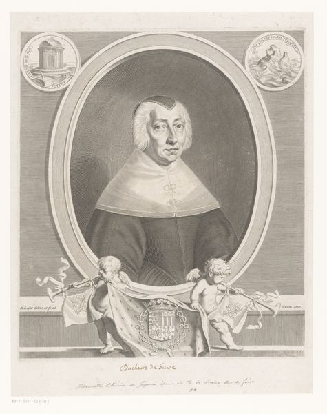 This is Simon Thaddäus Sondermayr’s portrait of Cardinal José Sáenz de Aguirre. The engraving uses line and shape to create a somber yet dignified image, framed within an oval. Notice how the composition uses geometric forms, from the oval frame to the rectangular base, creating a structured viewing experience. The lines are finely etched to capture light and shadow which define the Cardinal’s features and clothing. Text encircles the portrait, turning the artwork into a semiotic system. The Cardinal's gaze is direct and his posture erect, thus conveying authority and control. The formal structure of the portrait, with its emphasis on order and clarity, serves to reinforce the Cardinal’s status within the religious hierarchy, inviting us to consider how such images were used to communicate power. We might even see the portrait as an exercise in what Foucault called the 'technologies of the self'. The Cardinal is not merely depicted, but constructed, through the visual language of power.
