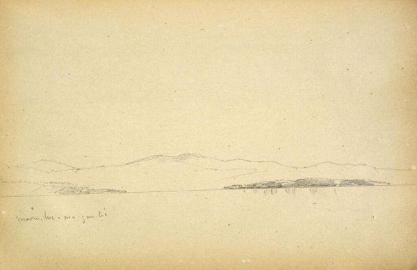 Editor: This is Benjamin Champney’s "Landscape with Water," currently residing at the Harvard Art Museums. It's a delicate graphite sketch. It feels incredibly serene, almost minimalist. What do you see in this piece? Curator: What strikes me is how this seemingly simple landscape embodies the complex relationship between nature, representation, and power. Champney, working during a period of intense industrialization, offers us a vision stripped bare, prompting us to consider the land's vulnerability. How does this depiction speak to anxieties around environmental change, even then? Editor: So, you're suggesting it's not just a pretty picture, but a commentary on societal anxieties? Curator: Precisely. The muted tones and skeletal lines subtly critique the dominant narratives of progress and expansion, urging us to reflect on the costs of such endeavors. Editor: That gives me a lot to think about. Thanks! Curator: My pleasure. Art is always a mirror to society.
