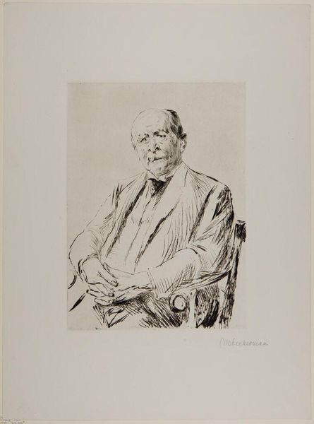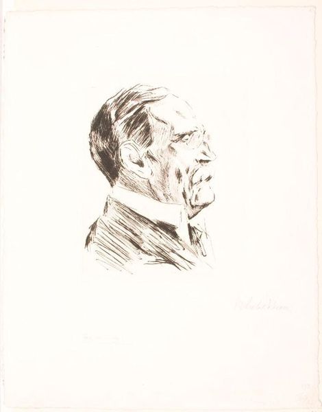 Editor: So, this is Max Liebermann's "Wilhelm von Bode." No date is listed, but it's a portrait over at the Harvard Art Museums. The lines seem so frantic, yet they capture such a composed, thoughtful expression. What do you make of it? Curator: Liebermann's sketch is like a visual whisper, isn't it? The frantic lines you mentioned almost vibrate with Bode's intellectual energy. I see a man deeply engaged, perhaps lost in thought about his next acquisition. Do you get a sense of his personality? Editor: I do, actually! There's a real sense of presence. I hadn't thought about the energy in the lines that way! Curator: Exactly! It’s less about perfect representation and more about capturing the essence of a man known for his passion. A fleeting impression, wonderfully caught. Editor: It's amazing how much Liebermann conveys with so little. I'll never look at a portrait the same way again!