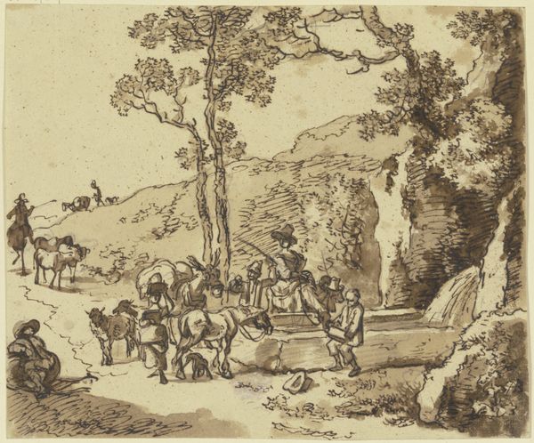 Lambert Doomer rendered this landscape with ink and brush, capturing an almost dreamlike scene. At its heart, a castle crowns a mountain, a symbol of power and aspiration. The castle, an archetype of human ambition, finds echoes across epochs, from medieval fortresses to fantastical visions in Romantic paintings. Its presence evokes a psychological landscape, embodying both security and isolation. Notice the figures traversing the rugged terrain, dwarfed by the scale of the mountain and castle. They remind me of how the heroic figure is diminished by the overwhelming forces of nature, much like in the Romantic landscapes of Caspar David Friedrich. This tension between human endeavor and the natural world taps into our collective memory. The image stirs a deep, subconscious sense of longing and the eternal quest for mastery, perpetually reshaped by time.