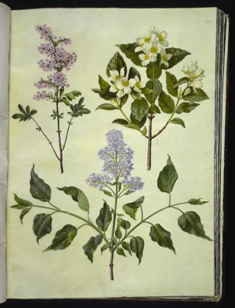 Hans Simon Holtzbecker captured these delicate Syringa ×laciniata, or cutleaf lilac, in a botanical illustration during the 17th century, a period marked by growing scientific curiosity. This work reflects the intersection of art and science, characteristic of the era's fascination with the natural world. During the 17th century, botanical art was not just about representation, it was deeply entwined with colonialism. European powers sought to document and exploit the resources of the lands they colonized. These meticulous drawings played a crucial role in this endeavor. Holtzbecker's delicate depiction invites us to reflect on our relationship with nature, and on the power dynamics inherent in its representation. The choice of rendering the lilac, with its fragrant blossoms, perhaps alludes to the transience of beauty. It acts as a reminder of the complex interplay between humans and the natural world, and on the impact of historical contexts on our perceptions.
