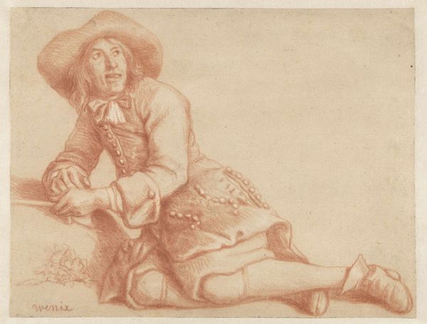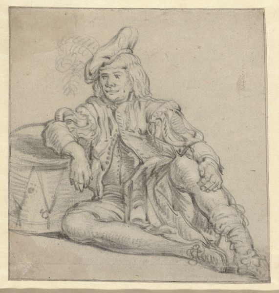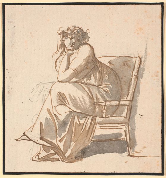 Editor: This is "A Boy Crawling on the Floor" by Paul Sandby. It’s a small sketch, just 66 by 100mm, and I find the monochromatic palette quite striking. What compositional elements stand out to you? Curator: The artist's use of line is paramount here. Observe how the varying thickness and weight of the lines delineate form and create a sense of depth. The figure is not merely represented, but constructed through the interplay of line and negative space. Editor: I see that now. The light seems to define the form, too. Curator: Precisely. The washes of tone, strategically applied, further articulate the figure and create a subtle contrast. Note how the artist uses these techniques to draw our attention to specific points within the composition. Editor: Fascinating! I never would have thought about the lines and washes so much. Curator: Considering these elements, we can see how Sandby elevates a simple subject through formal means.