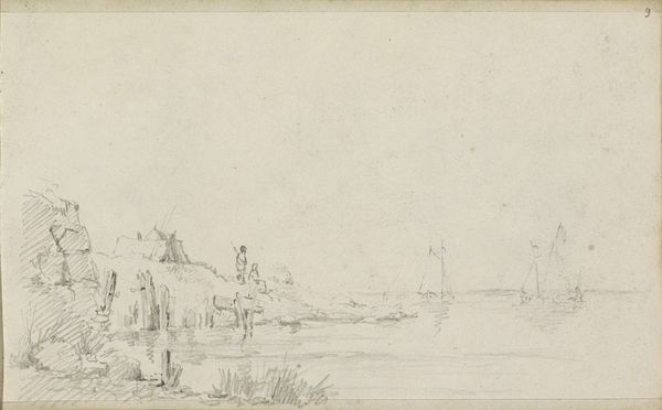 Willem Cornelis Rip created this pencil drawing called 'Boats at a quay' sometime around the turn of the twentieth century. Rip belonged to the Hague School, a group of Dutch artists who emphasized realism and the everyday. But this isn't just a straightforward depiction of boats; it's an exploration of the Netherlands' relationship with water. Water was central to both the country’s economic prosperity and defense. The sketch’s rough strokes capture a sense of the raw, unpredictable nature of the sea. Looking closely, we see a windmill in the distance, a ubiquitous symbol of Dutch ingenuity in land reclamation. The boats themselves suggest a working waterfront, a hub of commerce and labor. Rip's choice to focus on this scene speaks to the rising importance of the working class in Dutch society. Understanding Rip’s art requires us to look at the historical context, from the nation’s economic engines to its artistic institutions.