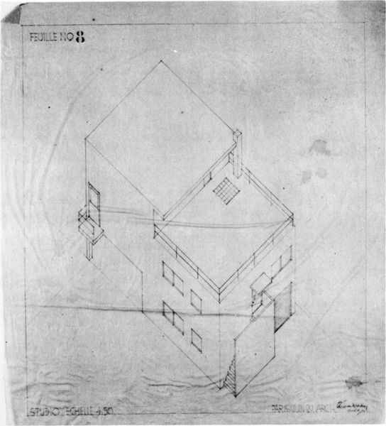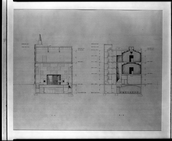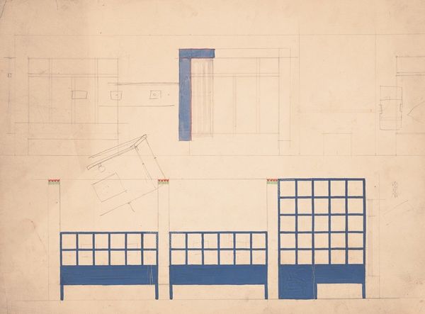 Curator: Staring at this blueprint feels like I'm gazing into the architectural equivalent of a Mondrian painting. Editor: Indeed! What we have here is Theo van Doesburg’s "Design for a house and studio for Bertalan Pór," showcasing elevations and plans, and a fantastic example of the De Stijl movement’s architectural ambitions. Curator: You know, it’s all rectangles and severe angles. But then my eye softens, finding unexpected beauty in these crisp, dark lines charting domesticity and the creation of art. A house *and* a studio, how delicious! Editor: De Stijl sought a universal language of form. Look how van Doesburg employs minimalist geometry, right angles, and precise proportions. It reflects the utopian ideals that permeated early 20th-century art and architecture. This wasn't just about building a house, but constructing a new world. Curator: Do you think Bertalan Pór liked it? Imagine living in something so… intentional. Like being inside an ideology. Still, that flat roof invites sunbathing, I'm sure. Editor: The design certainly aligns with Pór's own artistic leanings; he was a Hungarian painter with connections to various avant-garde movements, so this house was meant as an extension of the visual languages of its time. There is definitely a social program encoded in the work’s emphasis on rational design and functional living spaces. Curator: The funny thing about utopias, isn't it, is that even in principle, it’s impossible for everyone to agree, for something to satisfy all tastes or fulfill every single desire! Editor: That’s true, but this design serves as a pivotal document for understanding how early modernists sought to redesign daily life through art and architecture. We must also not underestimate that architecture at the time involved more male architects than now! Curator: I love pondering a drawing like this. Makes you consider all the unbuilt potential inside the lines. Editor: It challenges us to reimagine the possibilities embedded in built space and asks profound questions about the intersection of art, life, and social ideals.