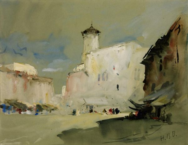 Editor: This is a lovely, small watercolor by Hercules Brabazon Brabazon, called "Murcia". It feels so immediate, like a fleeting impression. What strikes you about this piece? Curator: It’s the light, isn't it? The way he captures the Spanish sun, almost blindingly bright on those white buildings. I wonder, did he choose watercolor to try and keep up with the pace of the sunlight as it moved across the buildings? Editor: That’s a beautiful thought! It does feel like he was trying to catch something ephemeral. Curator: It makes me think about memory, how we hold onto fleeting moments. A little like catching sunlight in your hands, eh? Editor: That’s so true! I'll definitely see this in a new way now.