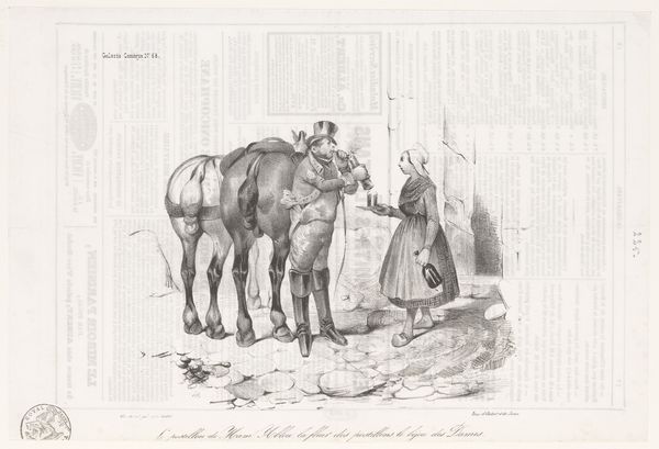 Editor: So, here we have "Spotprent," a print made in 1878 by Johan Michael Schmidt Crans. It's a political cartoon, very detailed and, honestly, kind of funny! I’m intrigued by the way the artist uses visual metaphors. What’s your take on it? Curator: I see this as a pointed commentary on Dutch politics in 1878. The inscription mentions "Toestand der Staatscuip," which roughly translates to the state of the political trough. Given the socio-political tensions of the era, with debates swirling around education ("Hooger Onderwys," "Lager Onderwys") and taxation ("Herzien Belasting"), I wonder if it's a critical statement. Editor: That makes sense! So, the horses, with those labels above their stalls… they represent different sectors or issues in Dutch society? And the man, fussing with the box, is trying to manage them? Curator: Precisely. The text beneath hints that this character, likely a financial minister ("Min. van Finantion als stalknecht"), is struggling, claiming, "I can’t do anything with it… and even less oats!" This tells us a lot about the artist’s view, perhaps reflecting public dissatisfaction. Where do you think this would have been displayed and who do you imagine its viewers were? Editor: It’s fascinating to consider the original context – probably a newspaper or a satirical magazine? And its viewers would have been people actively engaged in political discourse… I learned how critical art could be used. Curator: Yes, by examining art in this way, we discover so much about public opinion and societal pressures of that time! Thank you.