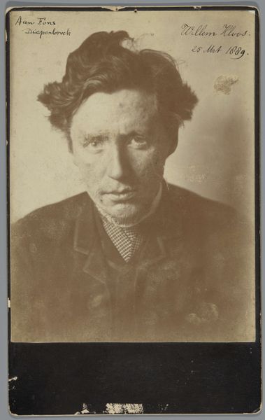This portrait of Karel Witsen was made by Albert Greiner in Amsterdam using a photographic process, likely albumen print, that was popular in the latter half of the 19th century. The photograph itself is a material document, speaking to broader economic and social conditions. The mass production of images was becoming increasingly common due to the rise of industrial capitalism, which allowed for faster and more efficient production methods. The albumen print process involved coating paper with albumen from egg whites, then sensitizing it with silver nitrate to create a light-sensitive surface. The material qualities of the photograph, such as the texture and sepia tone, are a direct result of this. The photograph signifies the labour involved in its creation, from the photographer's skill in capturing the image to the workers involved in producing the necessary materials. This shift reflects changing attitudes towards art and craft, challenging traditional hierarchies and highlighting the value of skilled labor in a rapidly industrializing world. By considering the materials, processes, and social context, we gain a richer understanding of the photograph and its place in history.