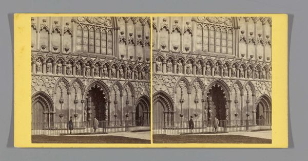This is a stereograph, a photograph by Alexander Wilson showing the screen in a chapel of Canterbury Cathedral. The image, duplicated side by side, is characterized by sharp vertical lines and pointed arches. The symmetry and repetition in the composition create an almost dizzying effect. This formal arrangement invites contemplation on symmetry itself. The photograph makes me think of a kind of visual language—a grammar of forms— that extends beyond mere representation. The architectural details, with their pointed arches and intricate tracery, are less about functionality and more about communicating ideas, or perhaps a shared cultural understanding, or a divine order. Wilson challenges our perception of space, layering surface and depth, thereby questioning the limits of photographic representation. In the end, this photograph of Canterbury Cathedral transcends its immediate subject, inviting us to engage with the complex interplay of signs and meanings embedded within the image.