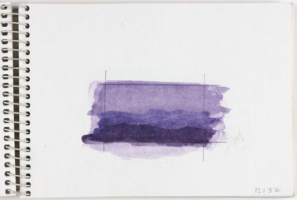 Curator: This delicate watercolor by Elena Prentice, simply titled "Landscape," offers a subtle study in light and form, dating perhaps to January 15th, 1982, based on the handwritten notation. Editor: My first impression is one of immense tranquility. It feels like gazing out at a still, endless sea under a pale sky. Curator: The visible grid lines suggest an interest in the structure and process of image making. Prentice seems focused on the materiality of the paint itself and its application on paper. Editor: Yes, the liminal space feels symbolic, that hazy horizon between the known and the unknown. It evokes a sense of contemplation and the ephemeral nature of perception. Curator: I find myself drawn to the raw quality of the sketchbook page, the imperfect edges of the watercolor washes. Editor: Ultimately, this small artwork invites us to ponder the vastness and mystery inherent in seemingly simple scenes.