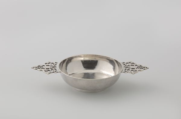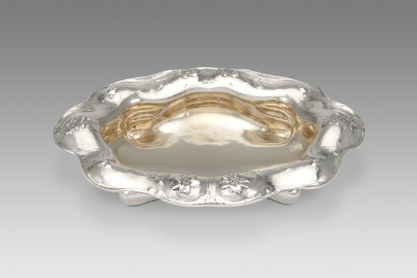 Editor: Here we have what's described as a Galvanoplastische reproductie van een schaal met visblaasvormige zwellingen uit het Lüneburger Ratssilber – so, a reproduction of a silver bowl, pre-1881, likely made by Fa. Vollgold & Sohn. I’m immediately struck by the almost organic feel of the repeated bulbous shapes. What's your take on it? Curator: I see a deliberate revival of forms. The “visblaasvormige zwellingen,” or bladder-like swellings, invoke naturalism, yet they're rendered with industrial precision through galvanoplasty. The repetitive nature also points to societal concerns, wouldn’t you agree? Are these forms merely decorative or symbolic of abundance, perhaps even fertility? Editor: Abundance makes sense. There’s almost a biological quality to the swellings, now that you mention it. The silvery metal contradicts that, though; does that tension do something for you? Curator: Precisely. The medium and the motif are not always aligned; this tension creates an almost haunting effect, freezing the promise of abundance in cold, hard metal. Consider what "silver" symbolized: purity, wealth, status, and divinity in many Western cultures since antiquity. So, a utilitarian object is imbued with more than practical meaning here. Editor: So the replication transforms the original and attaches these new layers of meaning…almost like cultural Chinese whispers. Curator: A superb analogy. The reproduction carries not just the form, but layers of cultural memory and reimagined significance, questioning the nature of value itself in a rapidly industrializing world. It certainly begs more questions than it answers, don't you think? Editor: It definitely gives me a lot to think about in terms of materiality and its shifting cultural role. Thank you! Curator: My pleasure. The journey through symbolic association is truly fascinating, wouldn’t you agree?