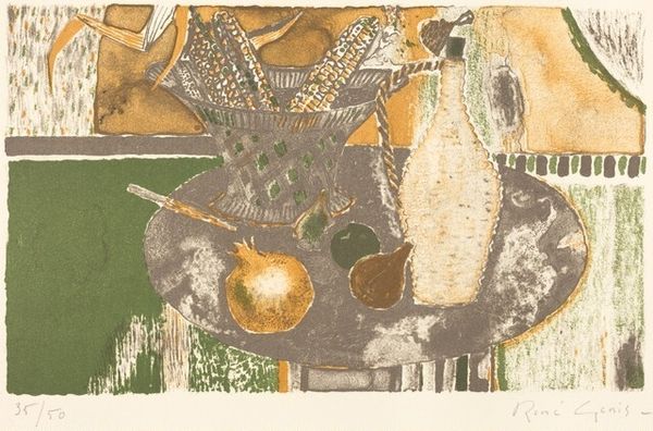 Editor: This mixed-media painting, "Prayer" by Jo Baer, was created in 1997. It's intensely layered and evokes a sense of somber reflection, even grief, with its skeletal figures and faded forms. How would you interpret this work, especially in relation to Baer's larger artistic trajectory? Curator: Considering Baer's prior engagement with minimalist abstraction, this painting signifies a significant shift towards figuration and narrative. Her earlier works were, in many ways, about institutional critique—questioning the framework of art itself. "Prayer" operates within a broader art historical context of the late 20th century, marked by postmodernism's challenge to established norms. We can view this turn to the figure, especially with motifs of mortality and vulnerability, as a reaction against the perceived detachment of earlier avant-garde movements. How does Baer employ these layered images to engage the viewer, beyond just visual appeal? Editor: The textual fragments embedded in the piece seem to act like whispers, directing the viewer towards specific readings but not dictating them entirely. Curator: Precisely. And it’s through those whispers – the poem fragments – combined with the juxtaposition of classical nudes, a skeleton, a burial, a stream, birds – the politics of imagery truly unfolds. It references classical traditions but does so through a contemporary, fragmented lens. How might those themes relate to societal concerns in the late 90s, when it was made? Editor: Maybe a pre-millennial angst? A fear of endings mixed with a reflection on past ideals and loss of purity? Curator: An interesting point! Seeing the painting as connected to such widespread cultural feelings certainly broadens its social impact. This work challenges our understanding of beauty, loss, and the stories we tell ourselves about both. It underscores the essential function art plays in processing difficult emotions and ideas in public dialogue. Editor: I didn’t see it that way at first, but you're right—it makes "Prayer" less like a personal lament and more like a cultural reflection. Thanks for helping me understand the political role of imagery!
