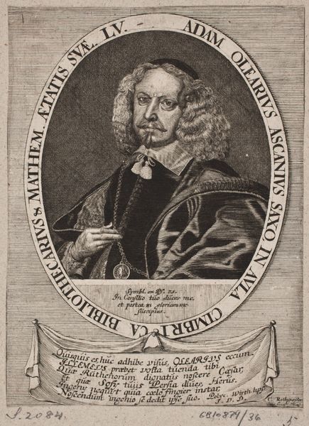 This is a portrait of Johann Hertzogk at the age of 42, made by Johann Caspar Hoeckner in 1667. The work is an engraving, a printmaking technique that demands the skill of a trained hand, and the focused labor to cut lines into a metal plate, which would then be inked and pressed onto paper. Look closely, and you will notice the intricate details of the lines, which create areas of light and shadow. This not only brings Johann Hertzogk to life, but also creates a sense of depth and texture. The inscription below the portrait, and the ornate frame around it, are similarly achieved with the use of engraving techniques. This reproductive medium allowed for the widespread dissemination of images in an era before photography, but also represents a system of production, in which the engraver's expertise could be bought and sold. Appreciate the craftsmanship and time that went into producing this elaborate portrait. By understanding the processes involved, we can fully appreciate the historical and cultural context of the work.