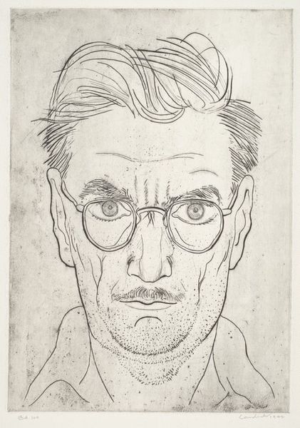 This self-portrait by Arend Hendriks is a small print rendered with etching techniques. The close proximity of the subject and the lack of colour create an intimate, albeit austere experience. Hendriks uses dense, cross-hatched lines to construct form and volume. This technique, reminiscent of older engraving methods, lends a tactile quality to the work. Notice how the sharp lines accentuate the contours of his face, the wrinkles on his forehead, and the frames of his glasses, lending a geometric austerity to the depiction. In semiotic terms, the etched lines function as signifiers, communicating not only visual information but also embodying the labor and process of creation. The absence of colour pushes the viewer to interpret the stark contrasts of light and shadow, engaging with the underlying structure. This self-portrait is not just a representation of the artist, but a meditation on the very act of seeing and representing, inviting us to consider how the artist's subjective experience is mediated through the formal constraints of the medium.