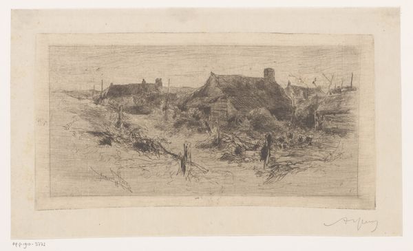 Editor: Here we have Andreas Schelfhout’s “Landschap met boerderij,” or “Landscape with Farmhouse,” made with pencil in the 19th century. It has such a delicate feel, almost like a memory. What social context do you see at play here? Curator: That’s a good observation. Considering the context, the 19th century witnessed the rise of the middle class and with it an increasing interest in rural life. Drawings like this helped to cultivate an appreciation for the Dutch landscape, almost as a form of national identity. Do you notice anything about how the composition might reinforce that? Editor: I see! The farmhouse is centrally placed, but it seems less grand and more…integrated into nature. It’s not a statement of wealth, but of belonging? Curator: Precisely. Think about the burgeoning art market too. Images like these weren’t just about representing the land, but also making it accessible, even saleable. These realistic and pastoral drawings reinforced a certain idealized vision that served particular societal needs and desires. How might the choice of a simple medium like pencil figure into that? Editor: Well, pencil drawings might be easier to reproduce and circulate. More affordable art for a broader audience? Curator: Exactly! And Schelfhout himself, how does he fit in? He had students, exerted influence. He shaped an entire generation of landscape artists. His artistic choices became institutionalized through teaching and widespread emulation. It's like he shaped our collective perception of the Dutch landscape, for better or for worse. Does knowing this alter your initial reading of the image as a memory? Editor: Absolutely! I hadn't considered how seemingly simple images contribute to much larger social narratives. Curator: It’s all about layers, isn’t it? Looking beneath the surface representation unlocks broader meanings. Editor: Thanks! I’ll definitely be looking at landscape art differently now!