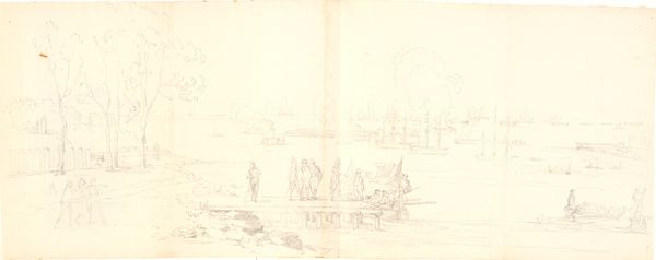 Editor: This is Consalvo Carelli's "Harbor Scene with Fisherman," a pencil drawing. It feels like a quickly captured moment, showing daily life. What’s your interpretation? Curator: I see the value not just in the scene, but in the artist's labor. Consider the physical act of drawing, the graphite on paper, the repetitive marks creating form. How does this labor reflect the social context of the fishermen depicted? Editor: That's interesting, I hadn't considered the connection between his work and theirs. Curator: Indeed, the art object becomes a document of both artistic and manual labor. Understanding the process illuminates the social realities represented. Editor: I'm beginning to see the piece in an entirely new light. Curator: Materiality and production offer vital layers of understanding.