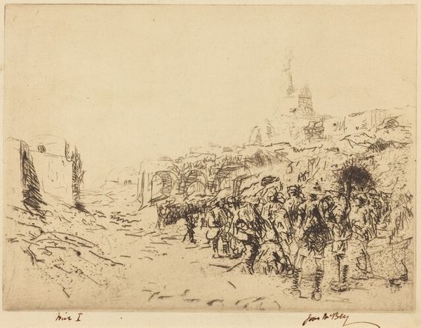 Editor: Here we have William Valentine Schevill’s sketch, “Study of a Procession II.” It feels almost dreamlike, like a half-remembered memory. What do you see in this flurry of lines? Curator: It's funny you say dreamlike, I feel that too. It's as if Schevill is capturing not just the scene, but the feeling of a procession - the movement, the solemnity, the barely-there details of faces and forms. It reminds me that art isn't always about perfect representation, but about evoking an emotion or a sense of place. Don’t you think? Editor: Absolutely. It’s less about "what" and more about "how it feels." I get it now. Thanks!