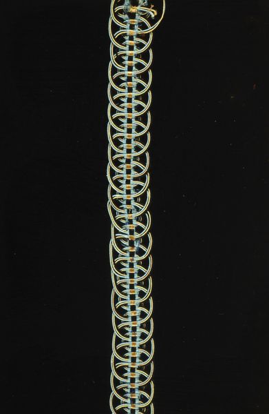 This 'Blue Band' was crafted by an anonymous artist. It features a series of repeating diamond motifs, bordered by vibrant blue fringes. The diamond, or lozenge shape, has long been a symbol of the feminine and fertility, dating back to ancient Neolithic cultures where it represented the vulva of the Earth Mother. The consistent repetition of this motif across the band echoes the cyclical nature of life itself. Think of the Paleolithic Venus figures—exaggerated forms embodying abundance and the life-giving power of women. The fringe adds movement, implying life force and energy. What’s fascinating is how these ancient symbols resurface, subtly altered, yet still resonating with our subconscious. Consider how, even today, patterns influence our emotional states and evoke powerful, primal memories. The motifs on this band continue a non-linear progression, resurfacing and evolving through history.