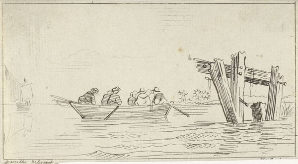 Hendrick Avercamp created this understated drawing, "The Ferryboat," with pen, brown ink, and watercolor on paper. The composition presents a small vessel crowded with passengers and horses, set against a broad, muted landscape. Avercamp’s use of line is delicate, creating a sense of movement and capturing the essence of a bustling river crossing. The limited color palette – primarily browns, greens, and touches of red – suggests a somber, perhaps even melancholy, mood. Avercamp's art reflects a structural interest in representing daily life and the natural environment. His close attention to detail places the viewer in a specific time and place, offering insights into the cultural codes of the period. The choice of watercolor on paper, combined with the work's small dimensions, speaks to Avercamp's interest in exploring the limits of representation. Ultimately, Avercamp’s "The Ferryboat" illustrates how formal constraints can be used to subtly challenge conventional ways of seeing and interpreting the world.