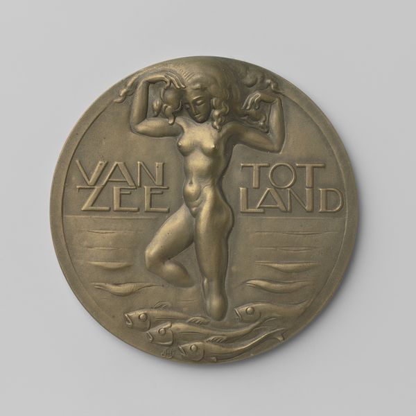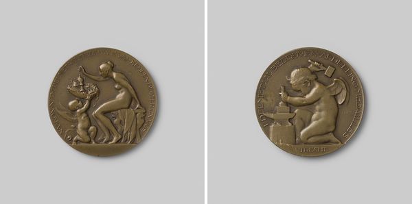 This bronze medal, commemorating the 25th anniversary of the Dutch Medal Art Society in 1950, was created by Jaap Gutterswijk. The medal presents a seated nude woman in profile, cradling a smaller coin or medal in her hands. In post-war Europe, the nude female form often symbolized rebirth, peace, and the continuity of life. Here, Gutterswijk’s woman is self-contained, focused on the small disc in her hands. Is she contemplating the role of art and beauty in a world recovering from devastation? Or, is she perhaps an allegory for the artists of the Medal Art Society itself? They, too, fostered the creation of small, intimate works of art, made to be held and considered closely. This medal invites reflection on the power of art to both commemorate and offer solace.