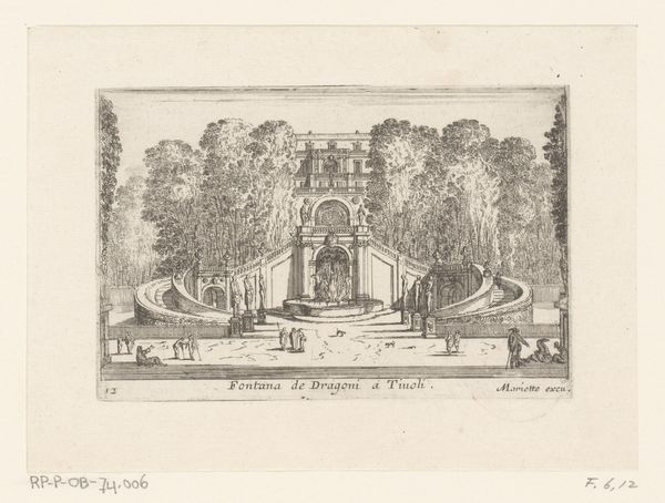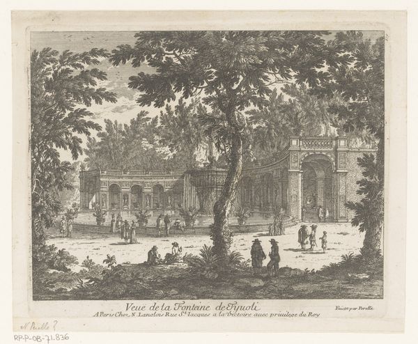 Israel Silvestre created this print of the great fountain at the Villa d’Este in Italy. It's etched in ink on paper, and the image shows the fountain as a place for elites to stroll, relax and enjoy the manicured landscape. Silvestre made this print in the 17th century, and it reflects an important shift in how European aristocrats expressed their social status. Instead of commissioning portraits showing off their finery, they were also patrons of architectural projects like the Villa d’Este. As the print suggests, the landscape of such places was just as important as the buildings themselves. The Villa, built by a Cardinal, was intentionally grandiose to reflect his power. Silvestre's print flattens the perspective, diminishing the scale, so we could argue that he critiques this display of wealth. To learn more, consult resources on the Villa d’Este and Italian gardens. You might also look at how the prints market influenced artists like Silvestre.