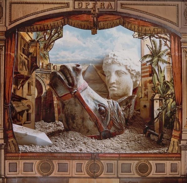Editor: This is Arthur Tress’s mixed-media piece, “Act I: The Birth of Ideas: Then all of a sudden, a Teapot appeared,” likely created between 1980 and 1981. It’s such a whimsical scene—a collage with a very surreal, almost dreamlike quality. What’s your interpretation of it? Curator: Well, I see a layering of constructed realities here. Tress seems to be commenting on how we consume and interpret reality through different lenses—art, theater, even domesticity. Notice how the proscenium arch frames the coastal landscape. What does it mean to stage nature like this, to commodify even our escapes? Editor: So, it’s more than just a playful image? The title itself is intriguing. Curator: Precisely. The "Birth of Ideas" suggests a generative, even revolutionary act. The teapot—an object of domestic comfort—appears suddenly, disrupting the staged landscape. Could it be a critique of the bourgeois ideal, the comfortable life obscuring larger societal issues? Consider also the role of surrealism at the time, grappling with the unsettling aftermath of war and a growing sense of societal alienation. Editor: That makes me think about how the piece seems to present artifice versus reality and how they are both intertwined and competing within a single image. Curator: Exactly. It prompts us to question where the boundary lies, doesn't it? Is the staged backdrop any less ‘real’ than the teapot in the foreground? What does it say about our perceptions? And whose story are we seeing, if there are competing symbols? What does the symbol of 'Opera' have to say? Editor: That's given me a lot to think about! I initially saw a charming scene, but now I see layers of social commentary. Curator: And that’s the power of art, isn't it? To constantly challenge and reshape our perspectives. This seemingly innocent piece is a complex interrogation of how we construct our world.