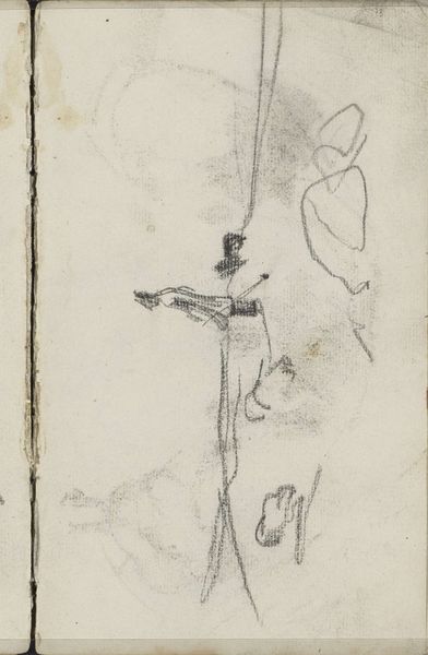 Carel Adolph Lion Cachet created this drawing, "Deer and an Ornament with Leaves", using pen and brush in brown and black ink. The visual structure is immediately striking: a dark, weighty deer form contrasts with the delicate, ornamental background. The composition, though seemingly simple, presents a fascinating interplay between the organic and the geometric. The deer, rendered with broad strokes, is powerful, primal. Yet, it's confined within the implied grid of the ornamental design. This juxtaposition invites us to consider the broader themes of nature versus artifice. The deer might symbolize untamed vitality, while the ornament suggests constructed order. Note how the rigid lines of the architectural structure clash with the flowing lines of the botanical decoration. This tension between the natural and the constructed, the wild and the cultivated, destabilizes any easy reading of the image. It encourages us to consider how such elements influence our perception and understanding.