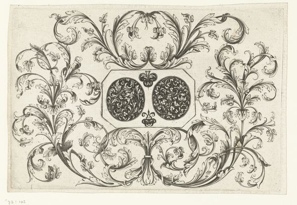 Curator: Looking at this fascinating engraving from 1770, titled "Vier juwelen," by L. van der Cruycen, my first impression is of understated elegance. Editor: Oh, my goodness, yes. They seem more like sketches of dreams, you know? Ethereal almost, even though they’re renderings of physical objects. Like little ghosts of jewelry, winking from another era. Curator: Exactly! What draws me is the process by which these were made. The use of ink, paper, and engraving techniques allows for incredible detail, highlighting the labour invested in depicting these precious objects. One can really consider it as an item intended for artisan training in fine metalwork, or as a decorative guide for affluent patrons interested in fashionable ornamentation. Editor: That’s wonderfully clinical. But I can also just imagine some craftsman using this very piece, right here, getting utterly frustrated with that ribbon in the upper left ornament! Trying to bend metal just so, sighing theatrically, "Cruycen, you’ve outdone yourself this time!" Do you think they swore as much back then? Curator: Undoubtedly, frustration knows no time period. What is interesting, looking closer at the materiality, is that its medium, a print, would allow wide circulation, enabling aspiring craftspeople in several places to utilize its illustrations to further improve design skills. It truly bridges the gap between function and representation. Editor: Bridging, yes, it really leaps! Because it seems so distant yet the precision and elegance of line – you can feel someone's breath as they sketched. Did the Baroque era jewelry of the affluent, you suppose, ever come close to looking as delightful? The originals must’ve weighed a tonne. Curator: Scale and weight versus aesthetic lightness, quite the juxtaposition, yes. I am intrigued by the composition, too, by what those blank spaces around each ornament tell us of consumer habits, of class, and even perhaps waste in a historical economic setting, don't you think? Editor: Ah, material context! Now you've really tugged me back in. Wonderful, thank you for providing all this perspective. It seems such a tiny peek but there is really so much that it reveals to us when we dig in together, isn't there? Curator: Yes, absolutely. Thank you, that was great.