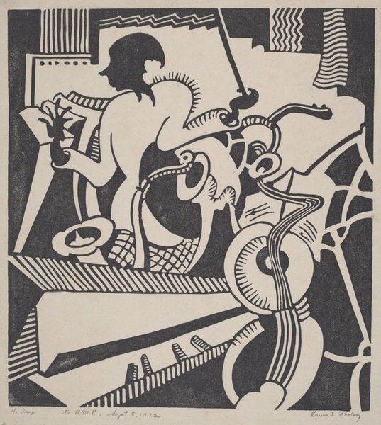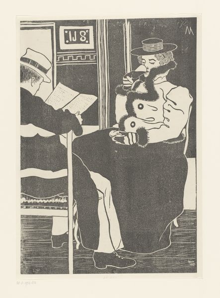 Editor: So, here we have "Mothers," a striking pen and ink drawing by Ivan Milev. It has such a stark, graphic quality. What's most intriguing is how stylized and symbolic it feels. What can you tell us about it? Curator: This image is compelling precisely because it blends folk traditions with modernist aesthetics. Think about the social context: early 20th-century Bulgaria, seeking to define its national identity after centuries of Ottoman rule. How might an artist contribute to that project? Editor: I guess, by looking back to folk traditions, trying to create a kind of "national" art? Curator: Precisely. Milev, along with other Bulgarian artists, was interested in the revival of national art. The stylized figures and decorative elements, rooted in Bulgarian folklore, become a powerful visual language for asserting cultural identity. What about the imagery strikes you as distinctly Bulgarian? Editor: Maybe the clothing, the stark black and white that seems a bit like woodblock prints, and how deliberately everything seems positioned. The whole composition seems rooted in some tradition. Is there anything specific that tells us about how this artwork was received by the public back then? Curator: Well, folk art was closely aligned with peasant culture and nationalist sentiments at the time. Exhibitions that highlighted these works were extremely popular in solidifying national identity and presented a more distinct break from previous art styles which copied Western styles more closely. But even the choice of medium itself – pen and ink drawing – speaks to broader shifts. This isn't high art oil painting, is it? It’s more accessible. Editor: So, it’s a statement in itself. The choice of such accessible, readily available materials becomes symbolic too. Fascinating. Curator: Indeed, and think about that accessibility and its relationship to the public it aims to reach. Editor: That makes me look at it with completely new eyes, thank you.