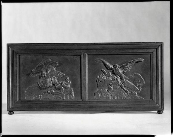 Editor: This is Philippe Laurent Roland's "Panel," made between 1771 and 1781. It's a wooden relief, currently housed at the Metropolitan Museum of Art. The symmetry is quite striking, with the central figure framed by those imposing eagles. What compositional elements stand out to you? Curator: The geometric rigor is undeniable. Observe the concentric framing – the central medallion, the rectangular panel itself, the subtle use of symmetry. The orthogonals, defined by the sharp relief and consistent depth of the carving, draw the eye inward, emphasizing the classical figure. The artist’s calculated contrast between the sharp geometric lines of the frame and the organic, flowing forms of the floral garland contribute to an appealing visual tension. What about the materiality interests you? Editor: The monochromatic palette certainly focuses attention on the texture and the details of the carving. Considering the neoclassical style, the wood seems almost... humble, against what I imagine its intended grandeur to be. How might the material contribute to our interpretation? Curator: The choice of wood invites contemplation on texture and line. While marble was conventional for Neoclassical sculpture due to its association with classical antiquity, Roland opted for wood which results in softer tonal graduations. Consider how light plays across the carved surface – does this gentle contrast mitigate the panel's inherent monumentality? Does this material choice subvert the expectations set by the artwork's visual content and style? Editor: It definitely softens the severity I initially perceived. I also see a shift in its presence and appreciate how the lines are softer when compared to traditional relief carvings made with marble. I am thinking of marble statues made during antiquity and how the visual differences result in my ability to read them so differently. Curator: Precisely. By manipulating conventional expectations via strategic choices of material, Roland has managed to forge his own path of semiotic and philosophical relevance. It underscores how materiality can reshape established notions within the artwork’s intended context. Editor: Thanks, this discussion really reshaped how I understood it. Thinking about the wood and textures certainly changed my understanding. Curator: Indeed, every formal choice offers a lens for decoding meaning, thereby underscoring the nuanced dialogue between form and material in Roland's panel.