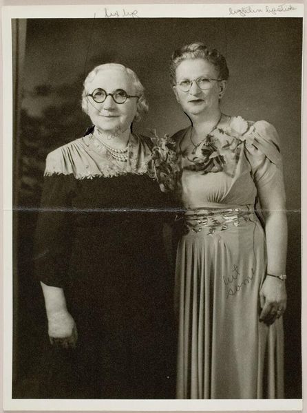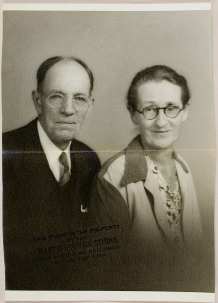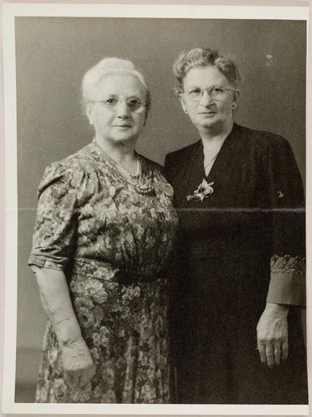 Curator: This is an untitled portrait of an older couple by Martin Schweig, it’s a small gelatin silver print, roughly 15 by 20 centimeters. Editor: There's something so starkly honest about it. The way they both gaze directly at the camera. It feels less posed and more...observed. Curator: The composition reinforces that directness; the subjects are centered, almost symmetrical, drawing attention to their faces. There’s a formal quality. Editor: Yes, but also a tenderness. Look at the subtle differences in their expressions – the hint of a smile in his eyes, the slight pursing of her lips. It suggests a lifetime shared, all in those tiny details. It’s really quite beautiful. Curator: The materiality is also compelling. The grainy texture of the gelatin silver print lends a sense of age and authenticity. One can almost imagine the artist in his studio, capturing this moment. Editor: Indeed. It certainly gives a lot of food for thought. It's almost like gazing into one’s family album.