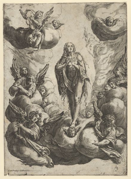 Cornelis Bos created this engraving of The Trinity in the mid-16th century. The image presents the Holy Trinity, with God the Father supporting the body of Christ, while the Holy Spirit as a dove hovers above. Angels holding the cross frame the central group. Bos was active in a time of religious upheaval during the Reformation in Northern Europe. His work reflects the visual codes and theological concerns of the period. The emphasis on Christ's suffering and sacrifice, as well as God’s compassion, speaks to contemporary debates about salvation, atonement and the role of the Church. Bos worked as a printmaker and publisher in Antwerp, a major center for artistic production. His prints circulated widely and helped to shape visual culture across Europe. Understanding the social conditions and religious controversies of the 16th century, the place of Antwerp and the development of the print market help to clarify the function and meaning of this image. Accessing historical sources, theological treatises, and the inventories of print shops, we can continue to learn more about the audiences for images like this.