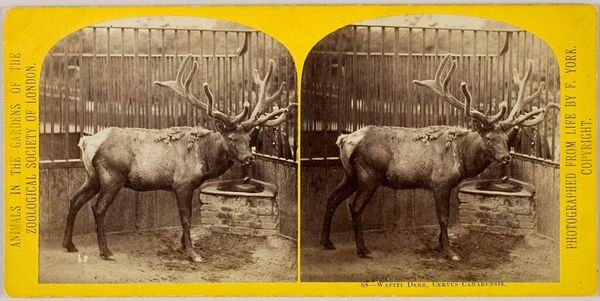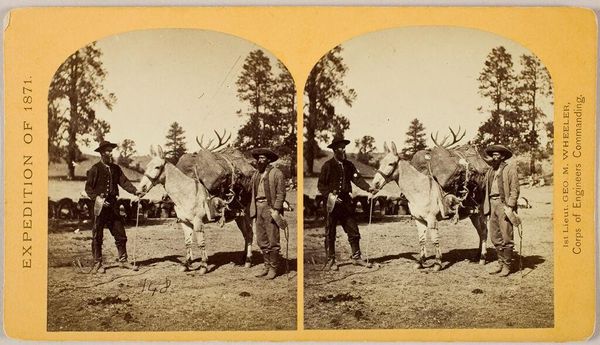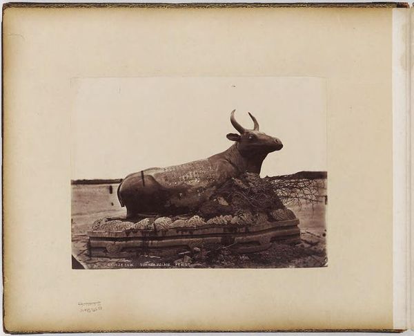 This stereoscopic image of a water buffalo in the Philippines was produced by an anonymous photographer, likely sometime around the turn of the 20th century. It's a double image, meant to be seen in special viewers that create a three-dimensional effect. Printed on card stock with a sepia tone, the photograph emphasizes the animal's physical presence. The texture and mass of the buffalo’s horns and hide convey a sense of its strength as a beast of burden, while the halter suggests a connection between the animal and the labor it performs. This image captures a moment in time, reflecting the intersection of photography, commerce, and colonial society. It invites us to think about the labor and material conditions that shape our world, and to question the traditional boundaries between art, craft, and everyday life.