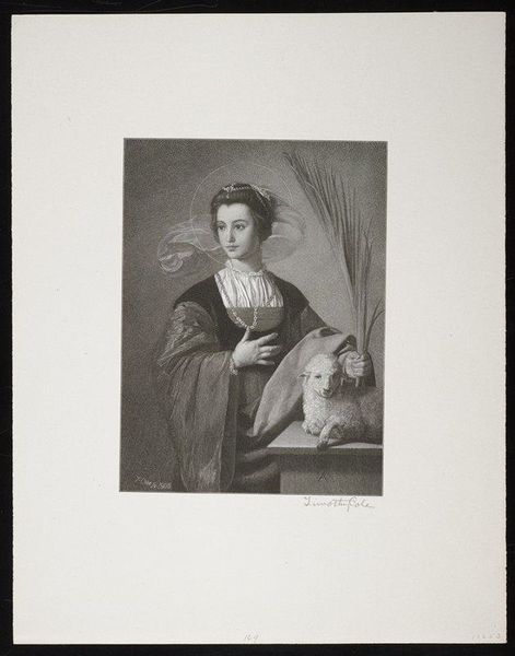 Editor: So, this is Timothy Cole's "Mrs. Somerset Davies," created in 1898. It's a wood engraving print. I’m struck by how the image feels both classical and slightly…ghostly, perhaps because of the monochrome palette. What can you tell me about this piece? Curator: Well, placing it within its historical context, we see Cole working within the late 19th-century printmaking revival. Prints became increasingly accessible. How do you think this shift affected the art world and its relationship to the public, especially in relation to portraiture? Editor: It allowed for wider distribution, right? More people could own a version of this artwork even if they couldn't commission or afford an original portrait. Curator: Precisely. It democratized the image, to a degree. This portrait, originally painted by Thomas Gainsborough, was recreated via a wood engraving. Consider how Cole’s role as an engraver shapes his own interpretation. Do you see any particular artistic license he might have taken? Editor: It's very detailed. And while it feels…reproduced, Cole also infused his unique touch to the portrait by translating the textures to print. Curator: Absolutely. Think about the societal expectations imposed on women in portraits during this period, and consider how those ideals might have been perpetuated, or even subtly challenged, through printed reproduction. How do museums impact access today? Editor: I guess museums are another place for folks to experience it directly, albeit still a mediated access with rules and contexts of display to it. Thanks for breaking it down! It gave a great overview! Curator: It's vital to think about what gets amplified in different eras. Reflecting on Cole’s engraving through a historical lens sheds a fascinating light on art, society, and power.
