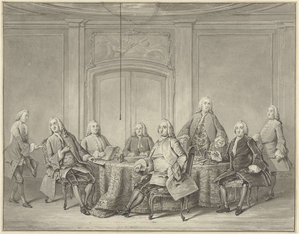 Hendrik Pothoven's "De kinderen van Pieter Cornelis Hasselaer en Clara Wendela Sautijn, wier portretten aan de wand hangen, met hun grootmoeder Wendela Eleonora Reael," is a 1761 family portrait depicting a Dutch family in a grand, elegant interior. The painting showcases the Hasselaer family, with portraits of the parents hanging on the wall, and the children and their grandmother seated in front of a fireplace. The work demonstrates Pothoven's adeptness at depicting the grandeur of the wealthy Dutch middle class in the 18th century, using subtle details and compositional balance to create a sense of opulence.