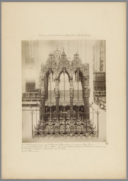 Médéric Mieusement made this photograph of the choir stalls in the Abbey of Saint-Denis in Paris. Photography itself is a process, and here Mieusement has skillfully captured the texture and form of the carved wooden choir. The photograph is not just a record, but an interpretation. Notice how the light catches the intricate details, emphasizing the depth of the carving and the weight of the wood. These stalls were made to seat the monks and clergy during services. The carving, clearly done by hand, shows remarkable skill, but also represents countless hours of labor. Consider the social context: this level of craft was supported by the wealth of the church, and the labor of the artisans. Looking at this image, we can understand the relationship between material, making, and context, and how they combine to create meaning. Ultimately, this photograph invites us to consider the value of skilled work.