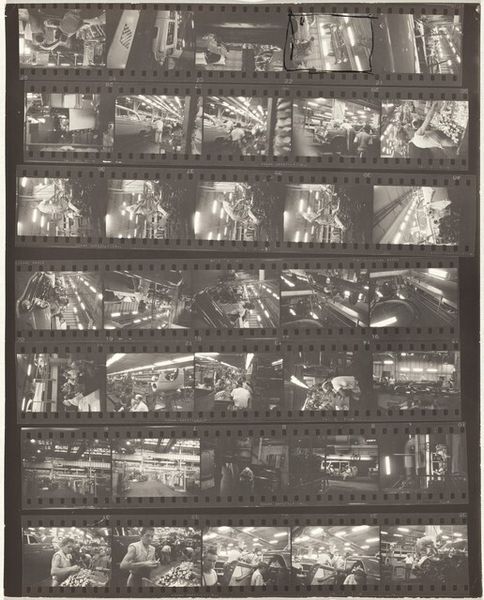 Robert Frank made this gelatin silver print, 'Die Reportage 49-60,' sometime between 1949 and 1960. It's a photographic collage, really, a collection of moments, like sketches in a visual diary. The high contrast, the stark blacks and whites, give it this urgent, immediate feel. It's like Frank is grabbing these scenes right out of the air. Looking at the surface, you can almost feel the grain of the film, the way the light catches on the paper. There's a sense of texture, even in these flat images, especially in the boxes of produce. I'm drawn to the image marked 53, with the hands reaching into the frame, doing something with the vegetables, it's a gesture of labor, of connection. It is this kind of intimacy that Frank excelled at capturing. It reminds me of other photographers of that era, like Henri Cartier-Bresson, who was also trying to capture these fleeting moments of everyday life. But Frank has a rawer edge. It's a reminder that art is always a conversation, always building on what came before.